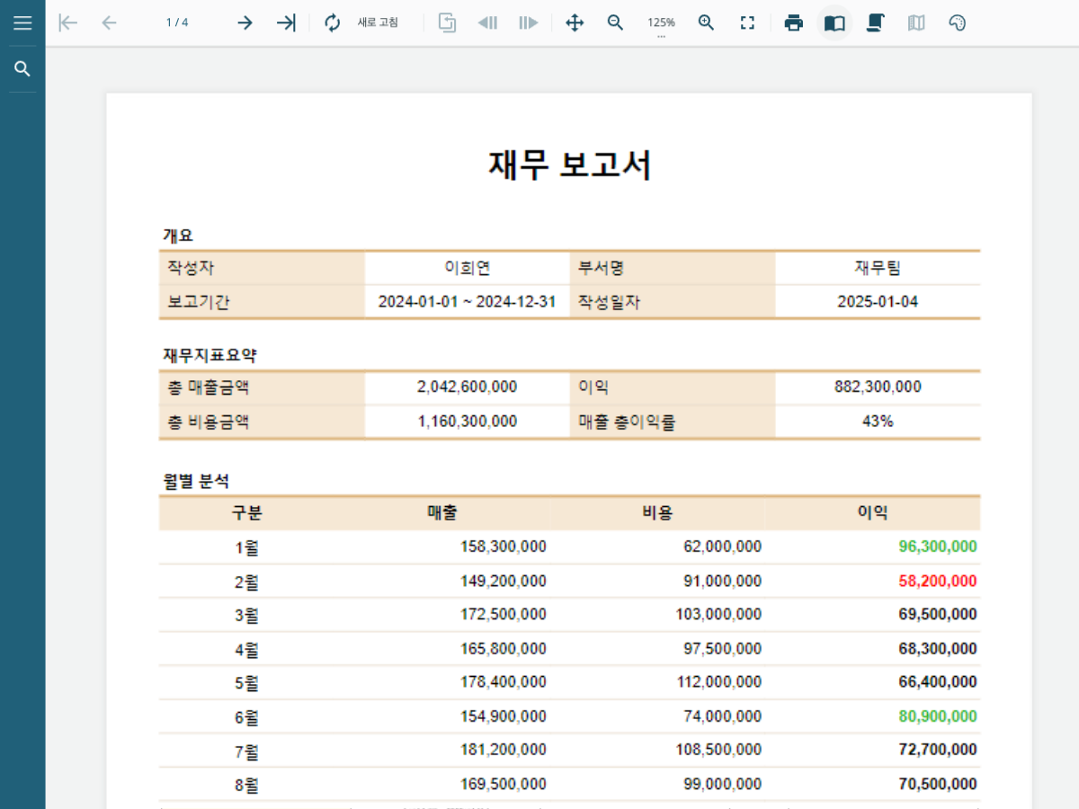 뷰어 컴포넌트를 사용하여 최종 사용자에게 최고의 보기, 내보내기 및 인쇄 기능을 제공해 보세요.