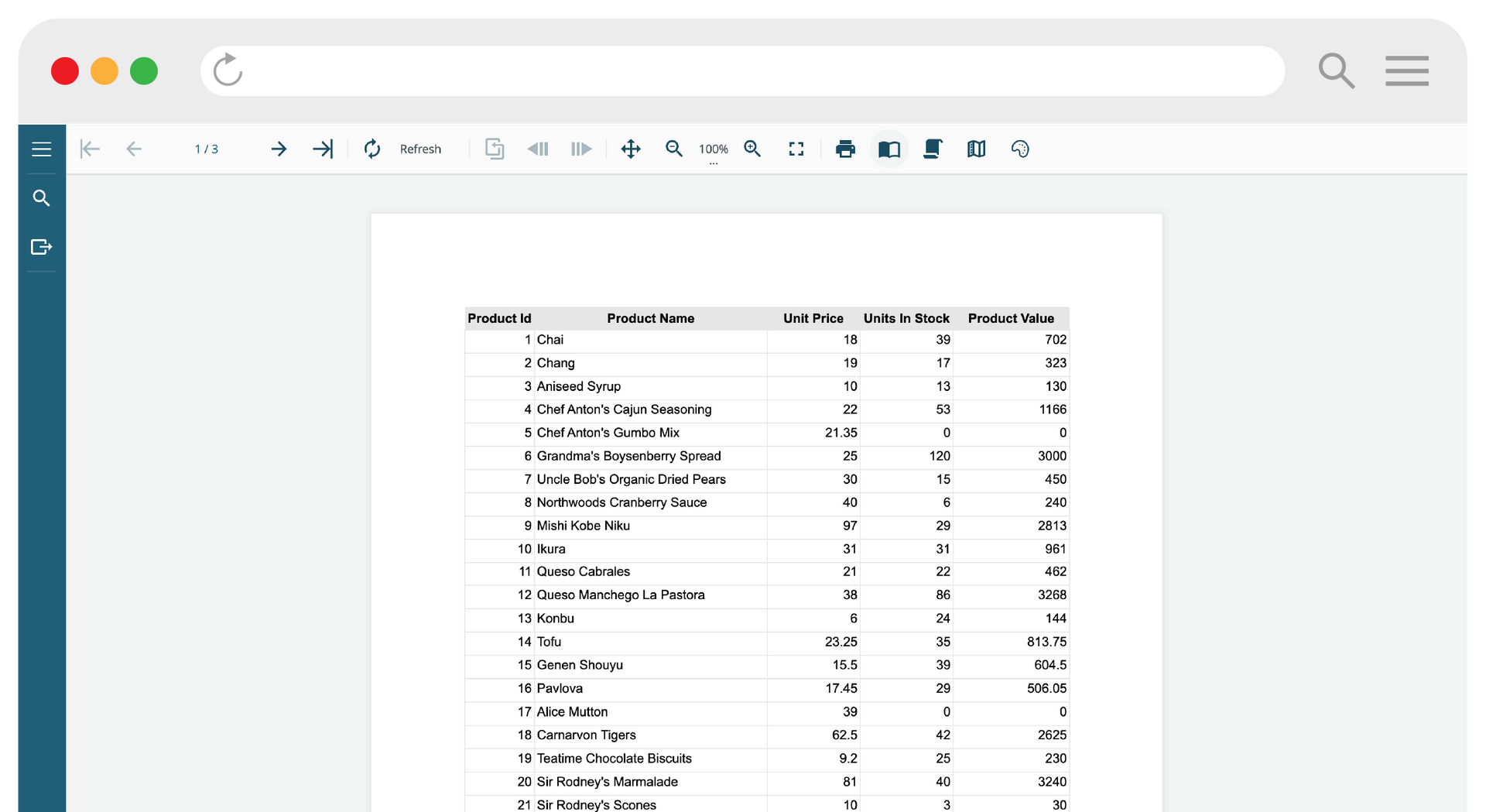 All reports are written in JSON format, so reports can be rendered on the web without restrictions with a JavaScript Report Viewer, regardless of device.
