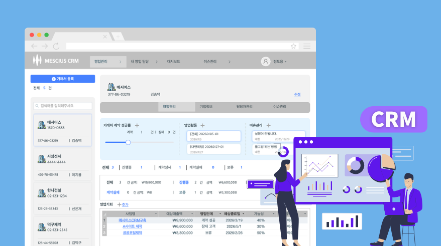 고객 정보와 영업 활동을 한 곳에서 관리하고 데이터 기반 의사결정을 지원합니다.