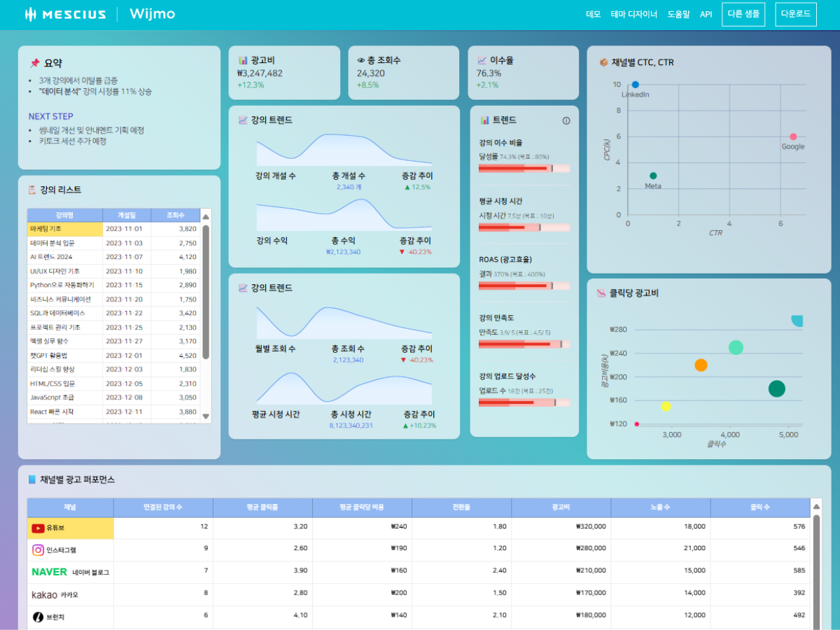 Wijmo를 활용한 다양한 템플릿과 샘플입니다. 실제 데모를 확인하실 수 있으며, 소스 코드를 다운로드하여 직접 커스터마이징하여 사용하실 수 있습니다.